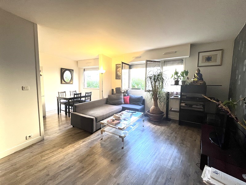Dans un immeuble de bon standing, charmant deux piéces de 54m2 comprenant une entrée avec des rangements, une cuisine ouverte donnant sur la salle à manger, un séjour avec un grand placard, un dressing, une chambre, une salle de bains et WC.