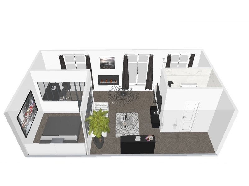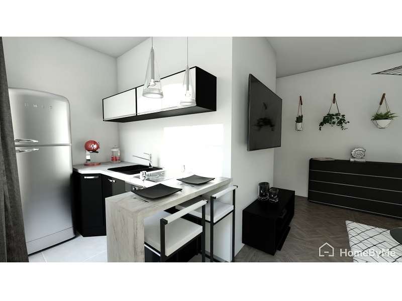 L'appartement comprend une entrée, une cuisine ouverte, un séjour et une salle de bain/WC.