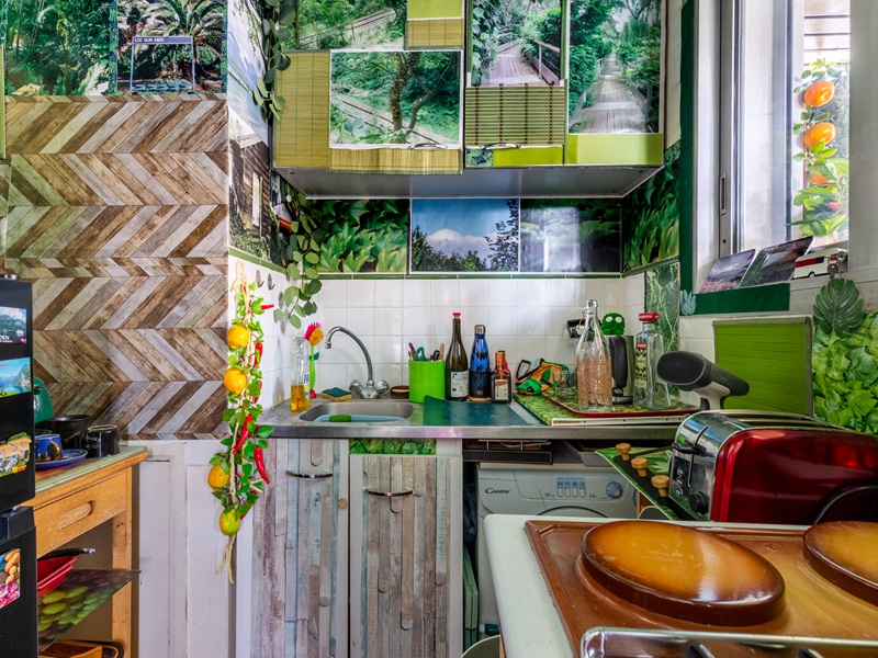Le studio se compose d'une entrée et d'une grande piéce de vie lumineuse avec cuisine ouverte, d'une salle de bain avec baignoire et d'un balcon donnant sur le jardin.