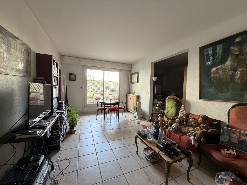 d'une entrée, d'une cuisine indépendante qui peut être ouverte sur le séjour, d'un espace de vie qui donne sur une terrasse de 19.27m2 au calme avec de la verdure ou l'on peut mettre table et chaises, de deux chambres, d'une salle de douche ainsi que de toilettes séparées. Les sols sont en carrelage et parquet.