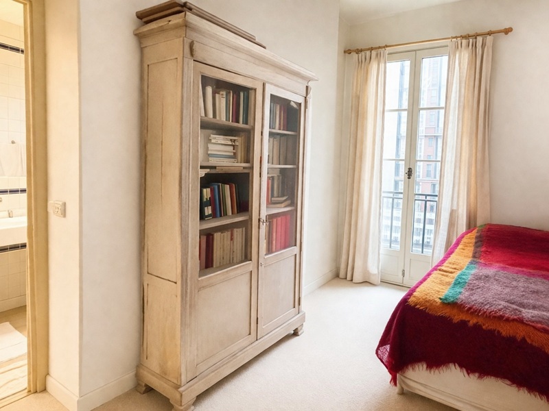 L'appartement propose aujourd'hui : une suite avec dressing, une seconde chambre actuellement aménagée en bureau, une piéce d'eau transformée en bibliothéque pouvant facilement devenir une chambre d'enfant ou un espace nuit supplémentaire, deux généreux espaces de rangement, un couloir avec WC.